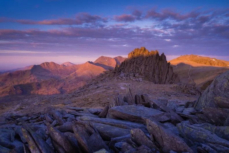 Dawn over Castell y Gwynt on top of Glyder Fach, Snowdonia National Park, North Wales