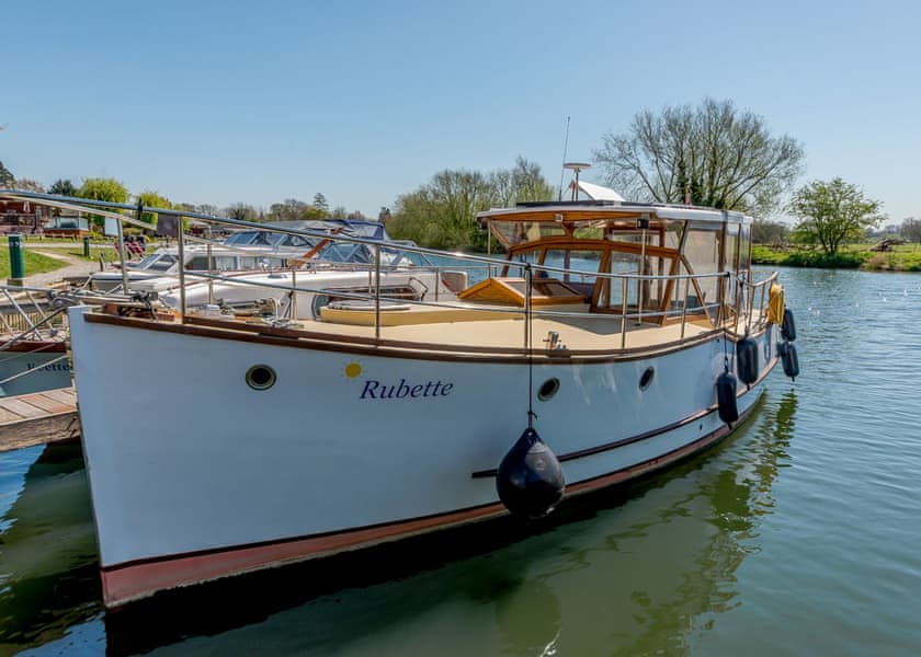 Available on the Norfolk Broads, these boats are available in a wide range of sizes sleeping from 2 to 8 people. Forward vision is very good from these craft, which usually feature a single level deck which many parties find more convenient and easy.